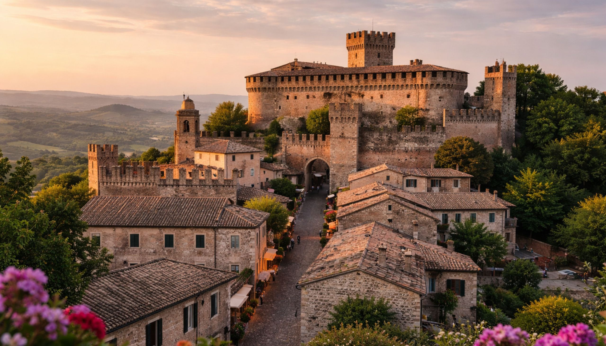 Vista panoramica della Rocca di Gradara, uno dei borghi medievali più romantici vicino Rimini.