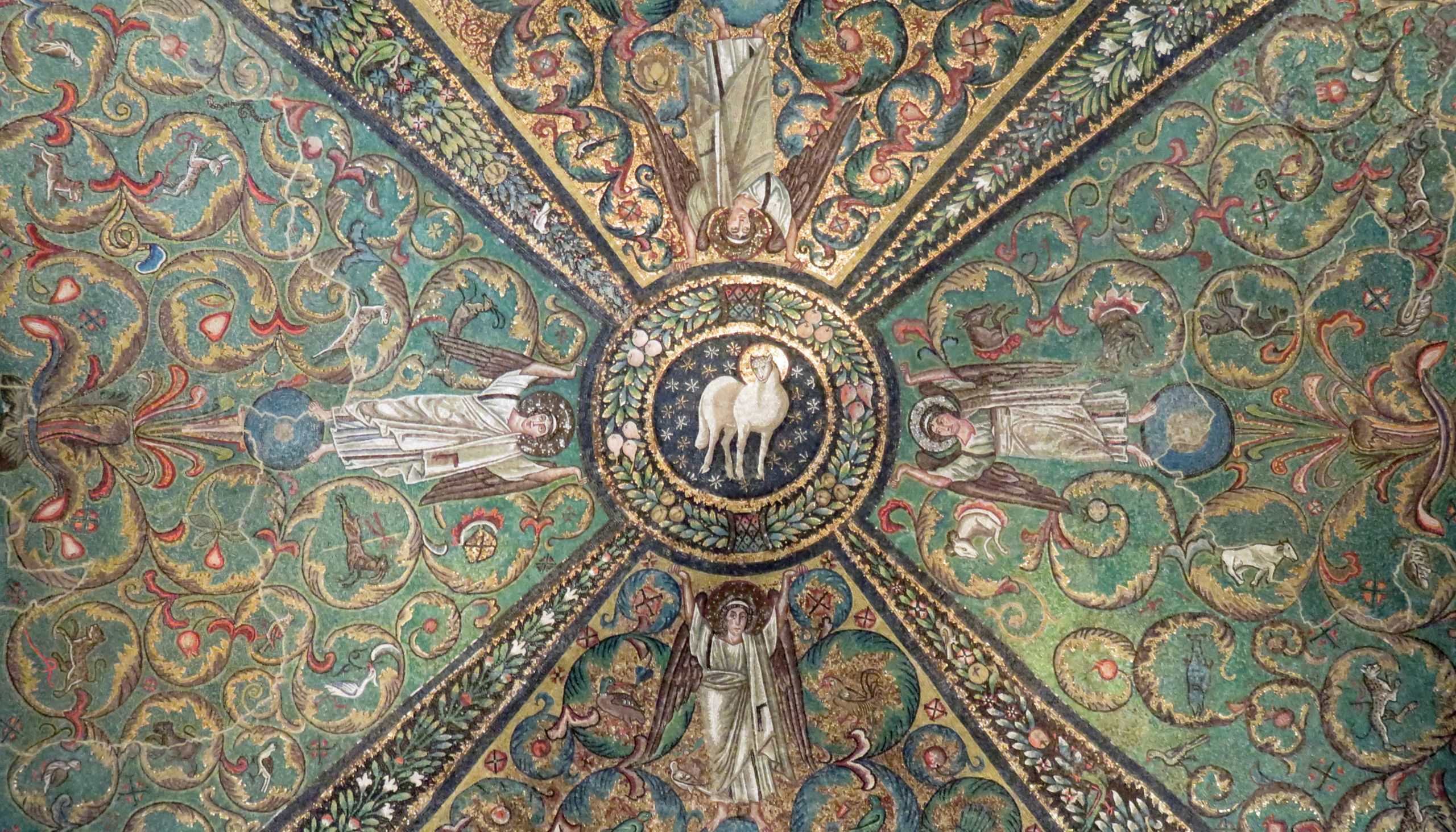Mosaici bizantini del Mausoleo di Galla Placidia, patrimonio UNESCO di Ravenna.